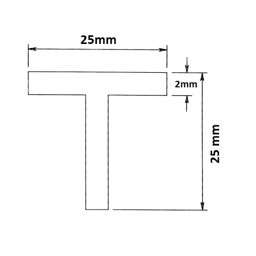 The Tee Section is available in 25mm x 25mm with wall thickness 2mm in 6 metre lengths.